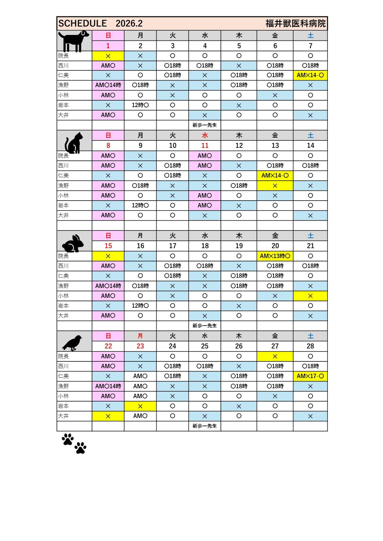 ※担当医のご希望がある場合はペットPASS備考欄にご記入、または来院時にお申し出をお願い致します。
