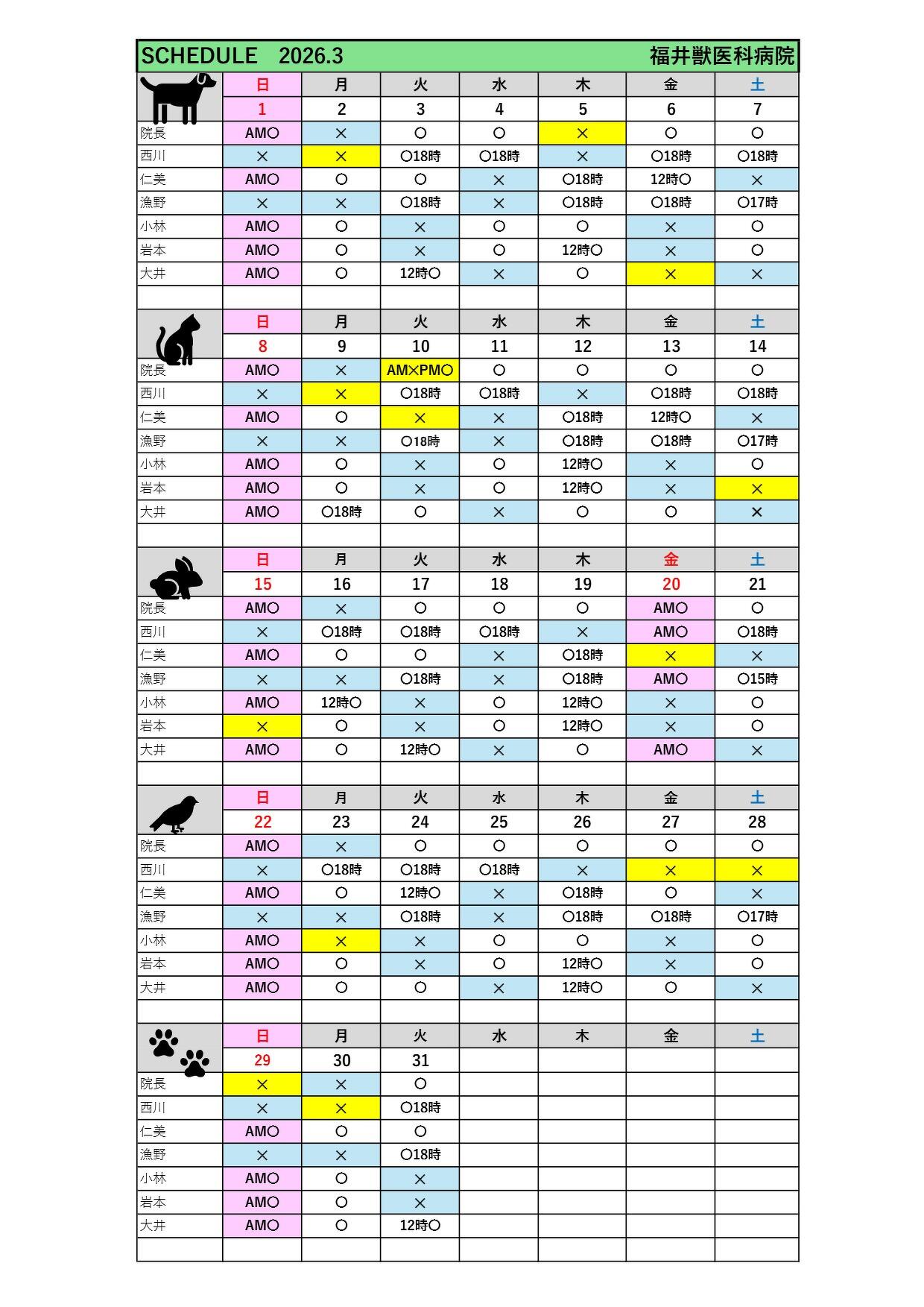 ※3月5日(木)3月29日(日)は院長の診察は終日休診