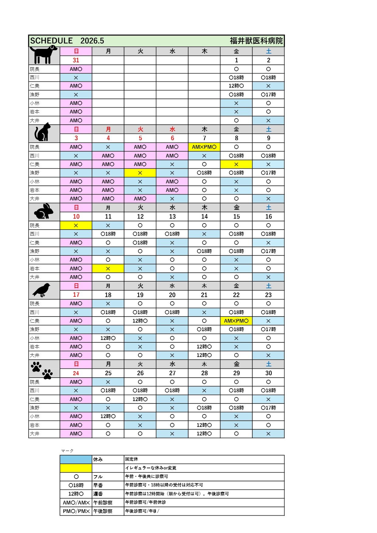 2026年5月の獣医の診察予定です。