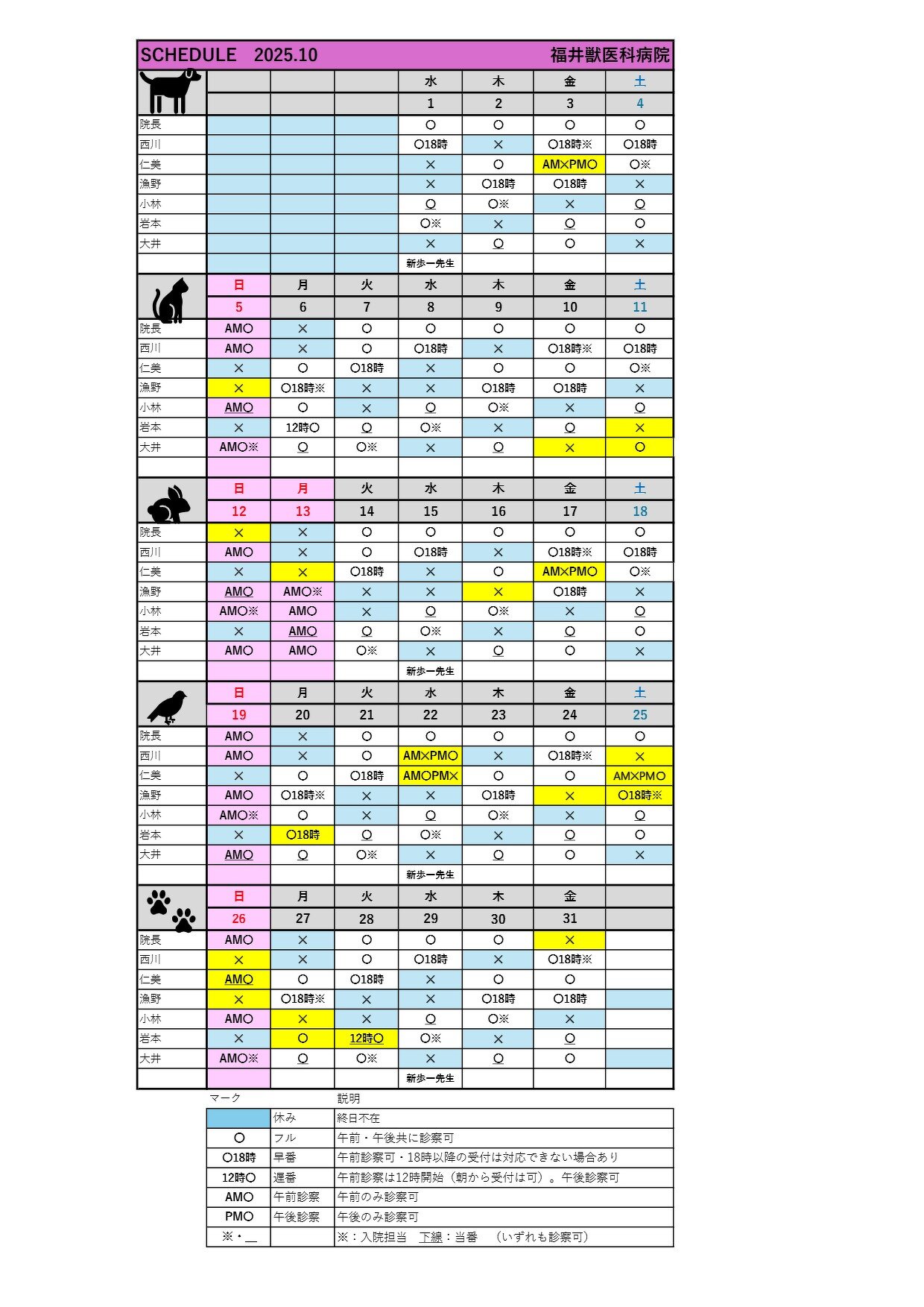 ※担当医のご希望がある場合はペットPASS備考欄にご記入、または来院時にお申し出をお願い致します。